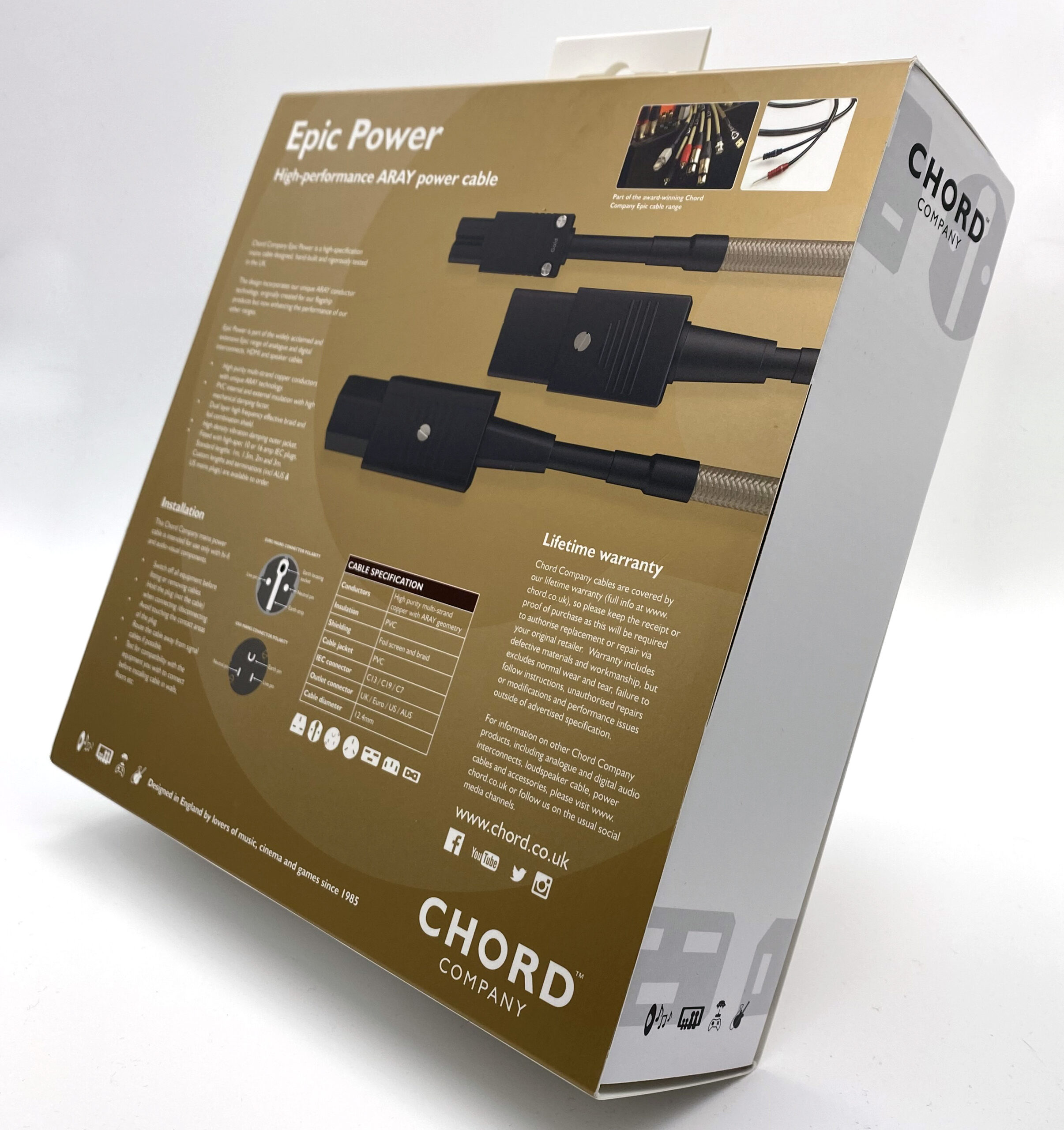 De Chord Company Epic Power is een hoogwaardige netkabel voor hifi- en audiovisuele systemen. Het ontwerp is met de hand gebouwd in Groot-Brittannië en bevat onze unieke ARAY-geleidertechnologie, oorspronkelijk ontwikkeld voor onze vlaggenschipproducten, maar verbetert nu de prestaties van onze andere series. Afwijkende lengtes zijn op aanvraag leverbaar, neem contact met ons op voor de mogelijkheden en de actuele levertijden.
