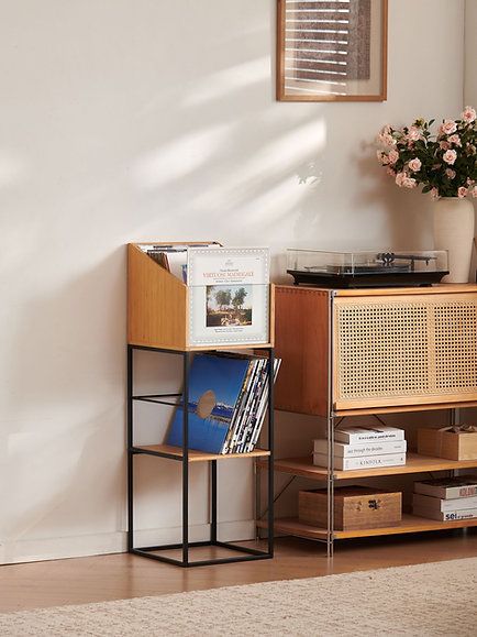 Met de Vinyl LP Stand biedt NorStone een opbergoplossing die zowel esthetisch als praktisch is voor alle vinylliefhebbers. Ontworpen met een zwart metalen frame en natuurlijke bamboe oppervlakken, past dit minimalistische meubelstuk naadloos in elk interieur – van modern tot vintage.