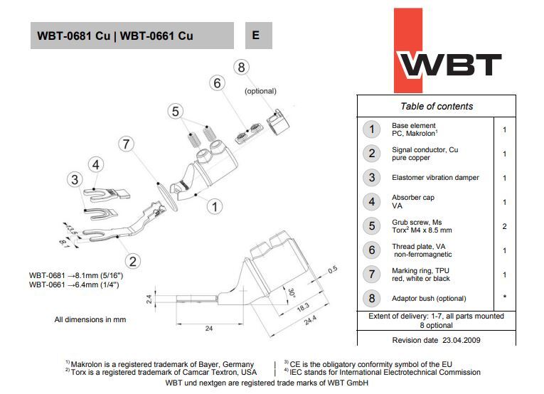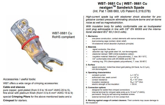 WBT-0661 CU (koper) – Sandwich spade 6,0 mm max. 10 mm² 7 AWG per 4 stuks in showcase